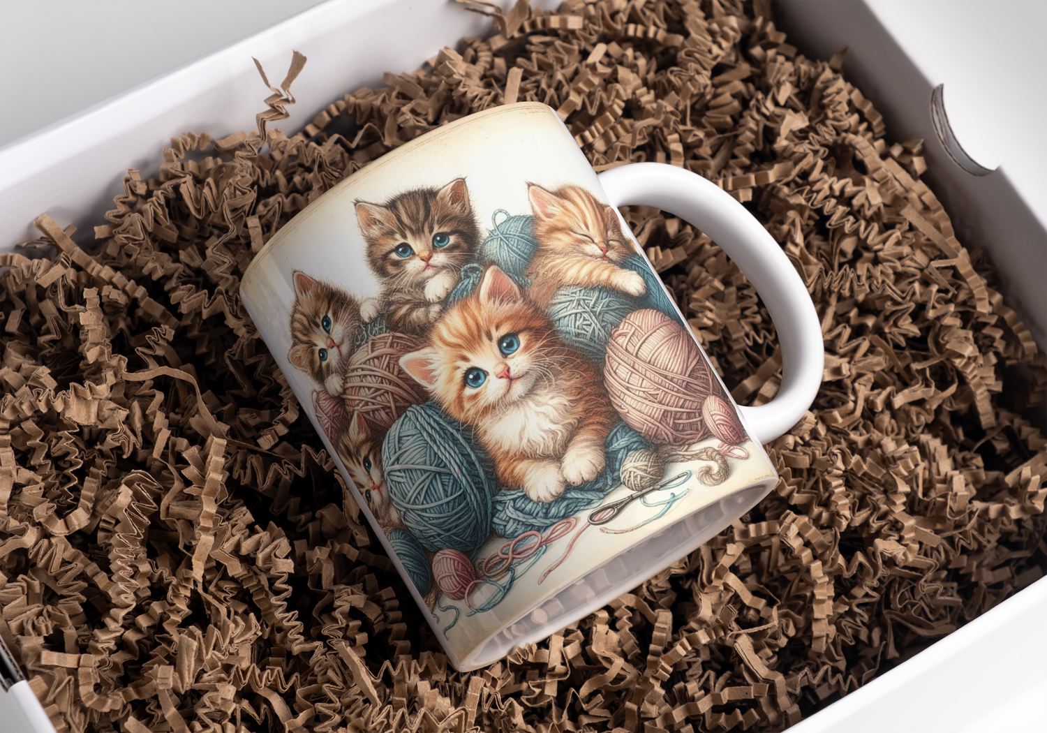 Beker 4 kittens met wol
