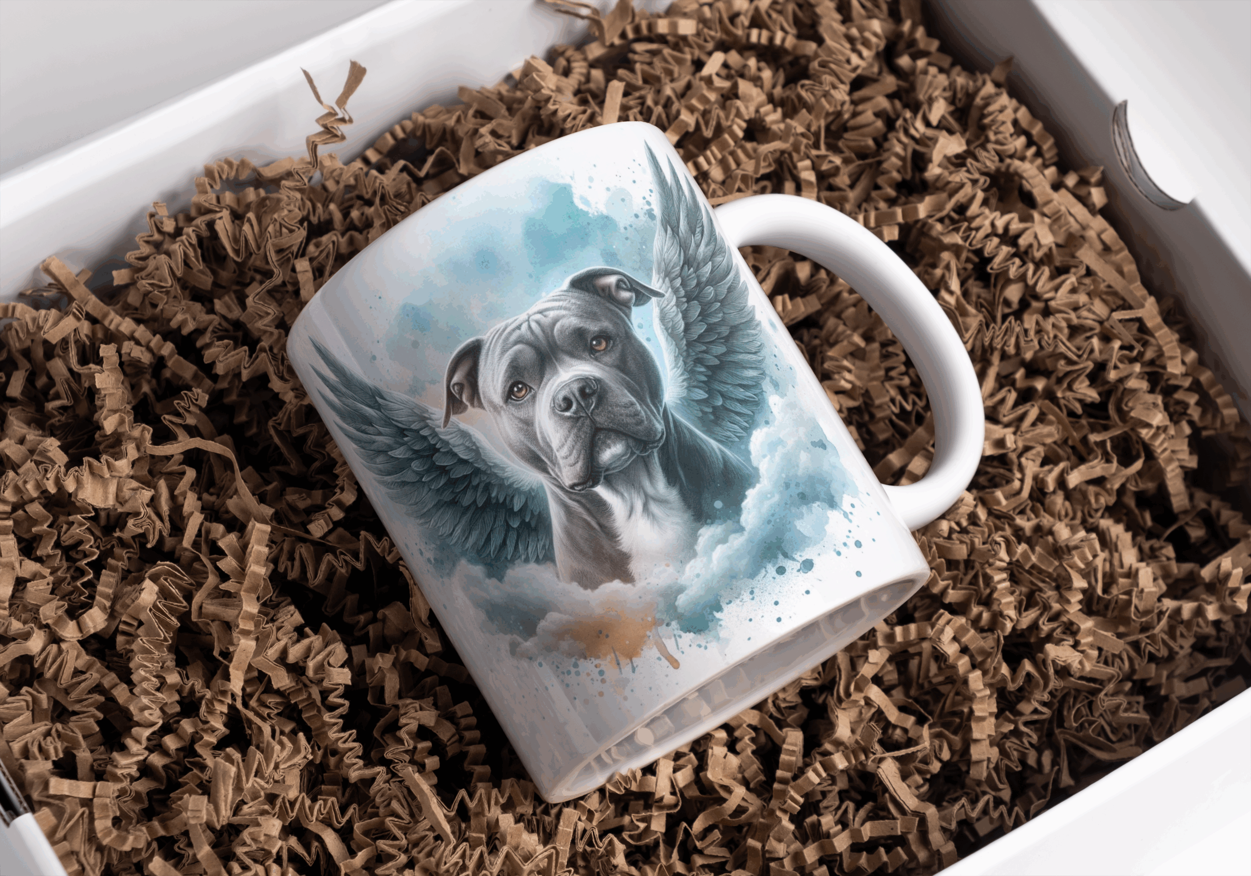 Beker angelwings pitbull grijs met wit