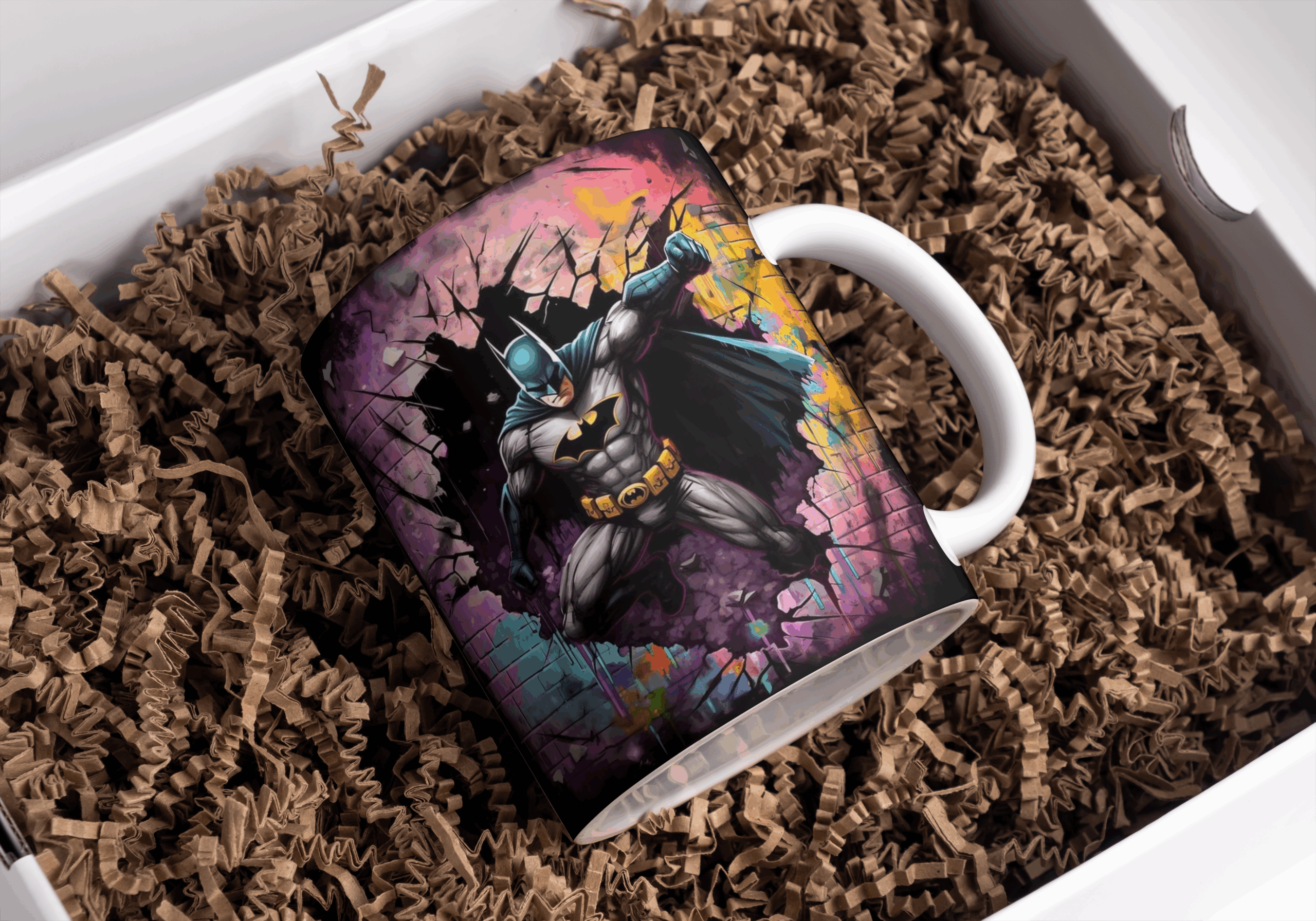 Beker batman door muur