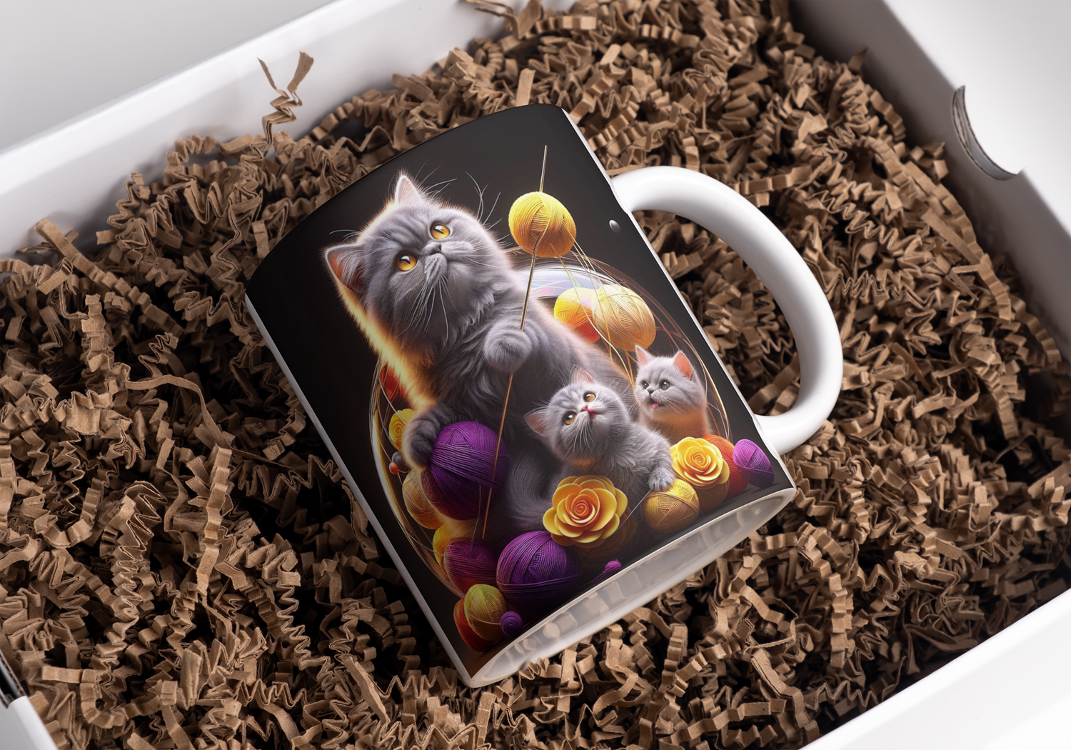 Beker exotic shorthair grijs met kittens