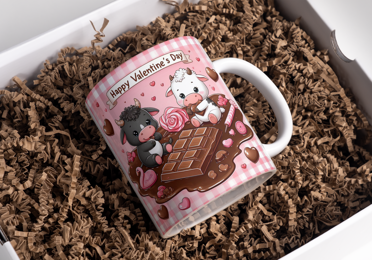 Beker valentijnsdag koe zwart en wit en zwarte koe