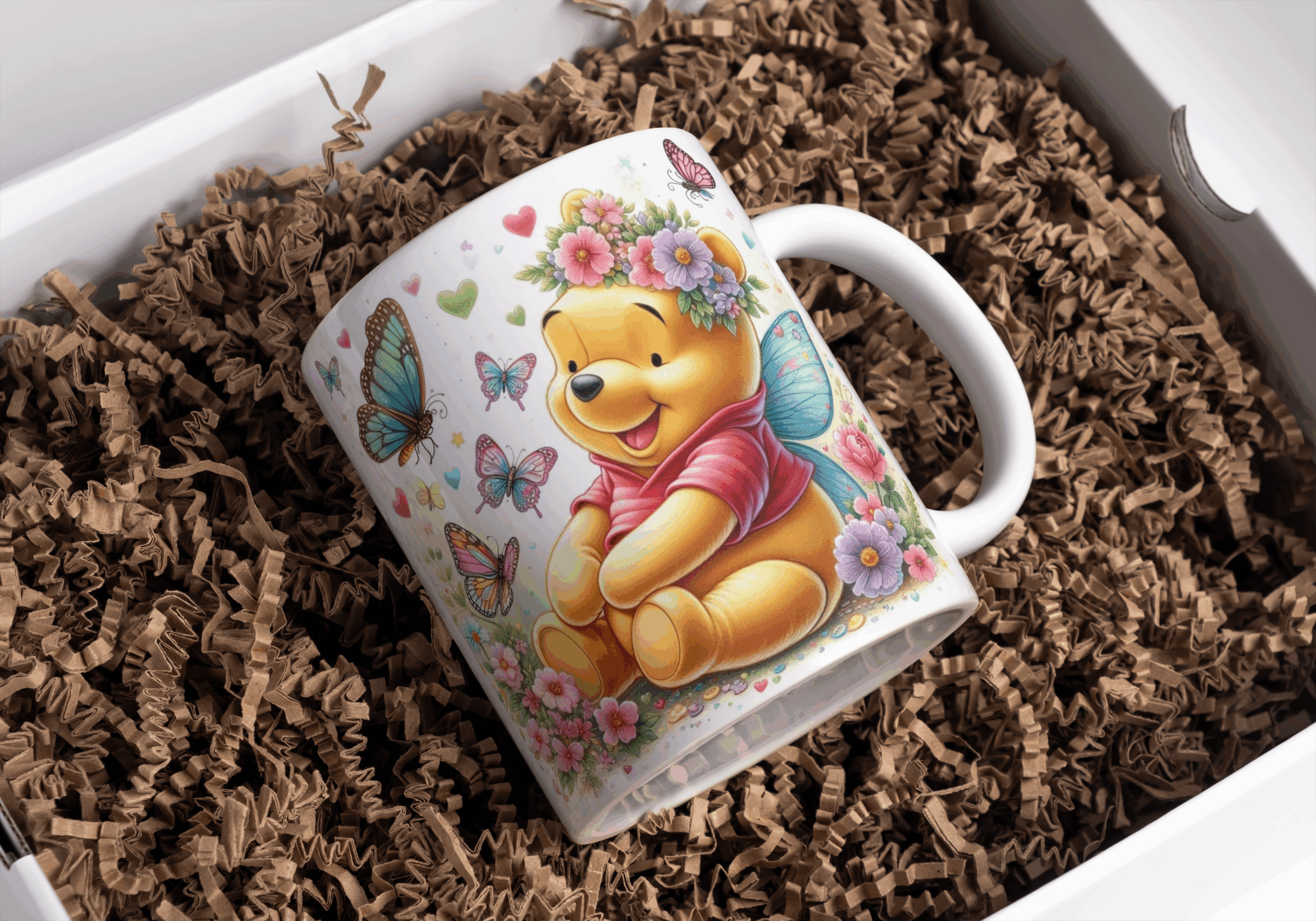 Beker winnie de pooh vlinders en bloemen