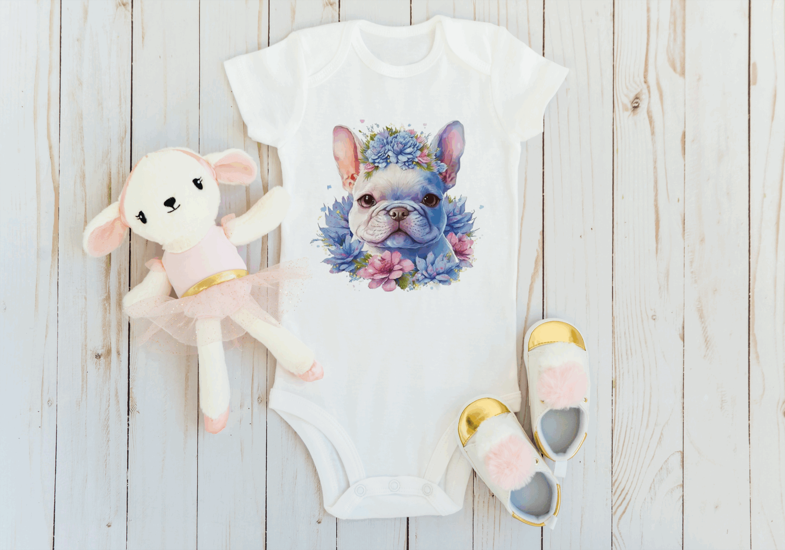 Romper franse bulldog bloemen