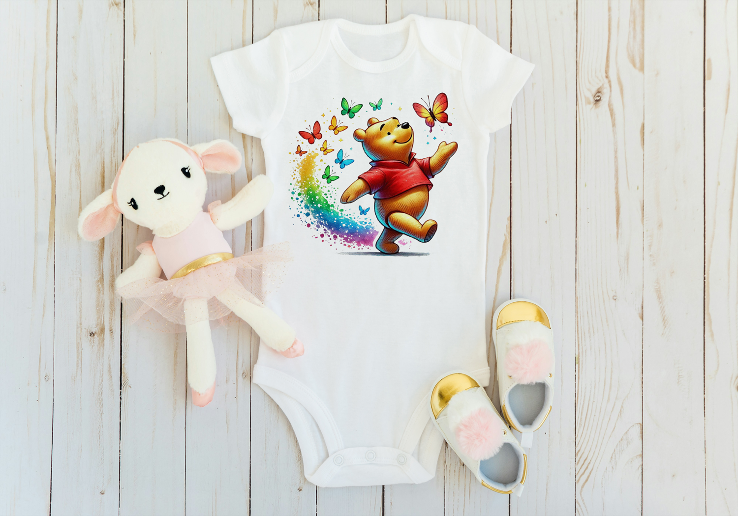 Romper pooh regenboog vlinder
